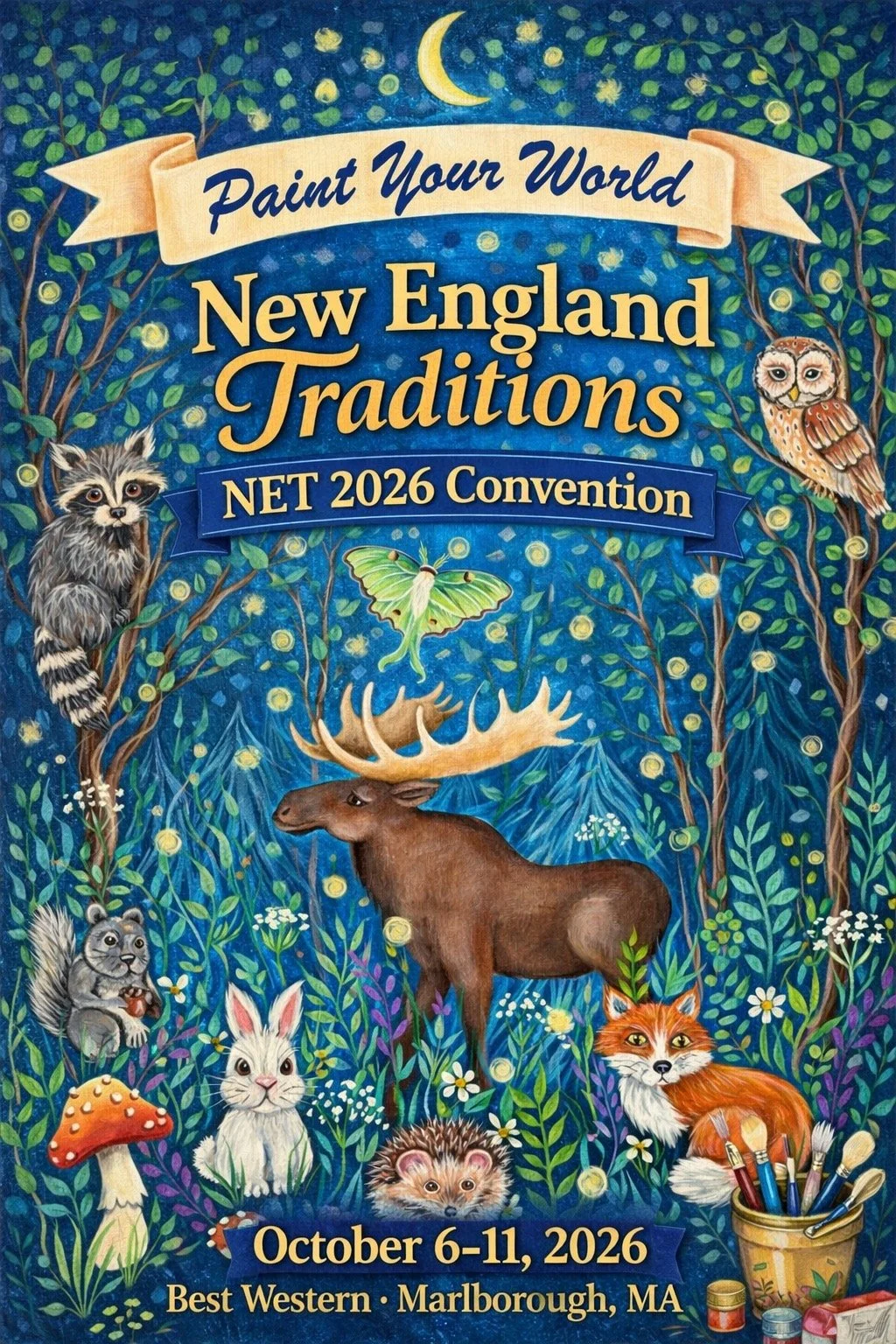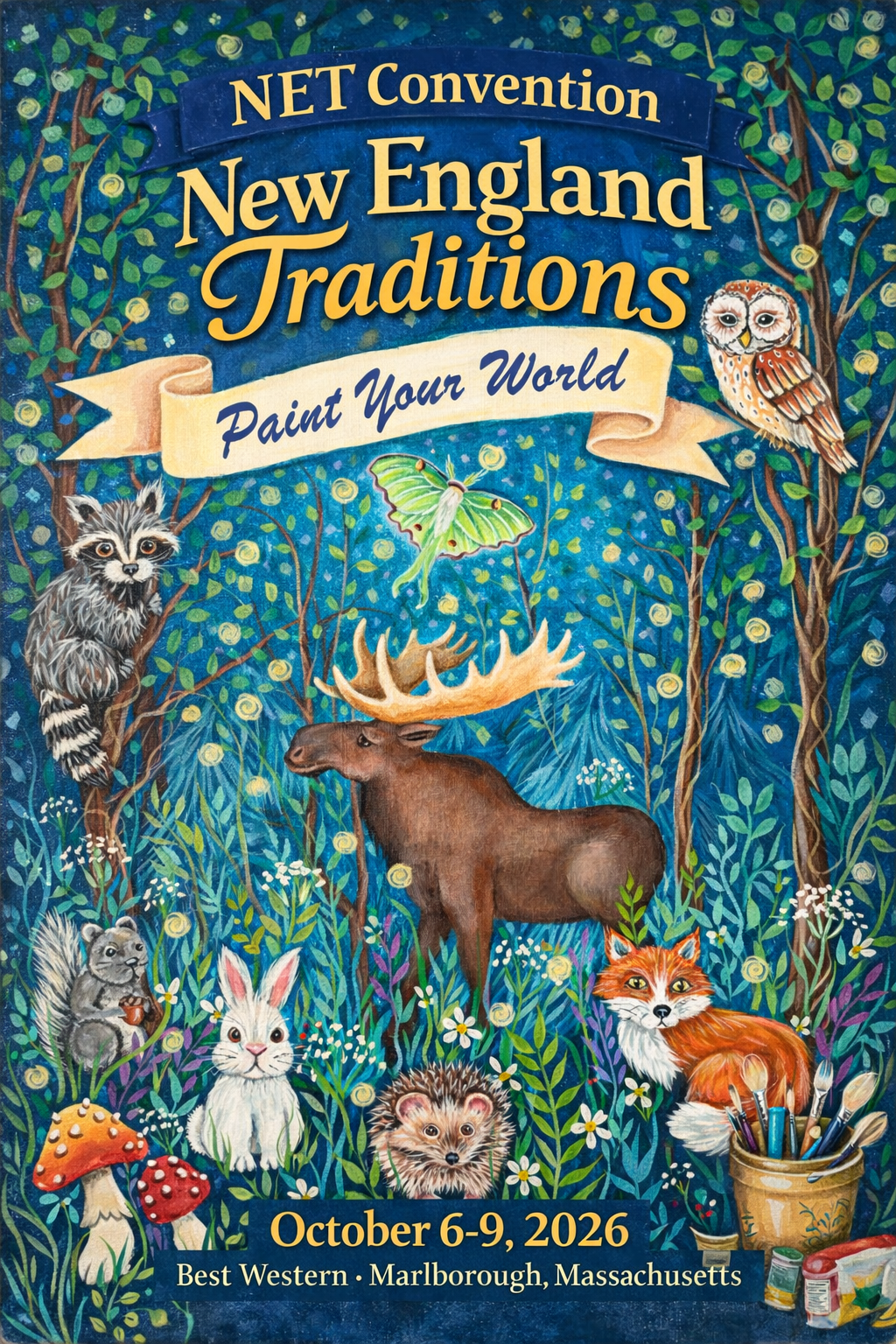 We have proudly celebrated New England Traditions decorative painting conventions since 1999, offering painting classes in a variety of mediums: acrylic, oil, watercolor, colored pencil, pastel, and mixed media. Our experienced teachers welcome students from beginner through veteran to their creative classrooms. Our Exhibit Hall is full of everything you need to spark your creativity: designs, brushes, paints, surfaces, and more! Our Catalog will be ready for download on April 1, 2026 to see what this joyful arts experience is all about.
