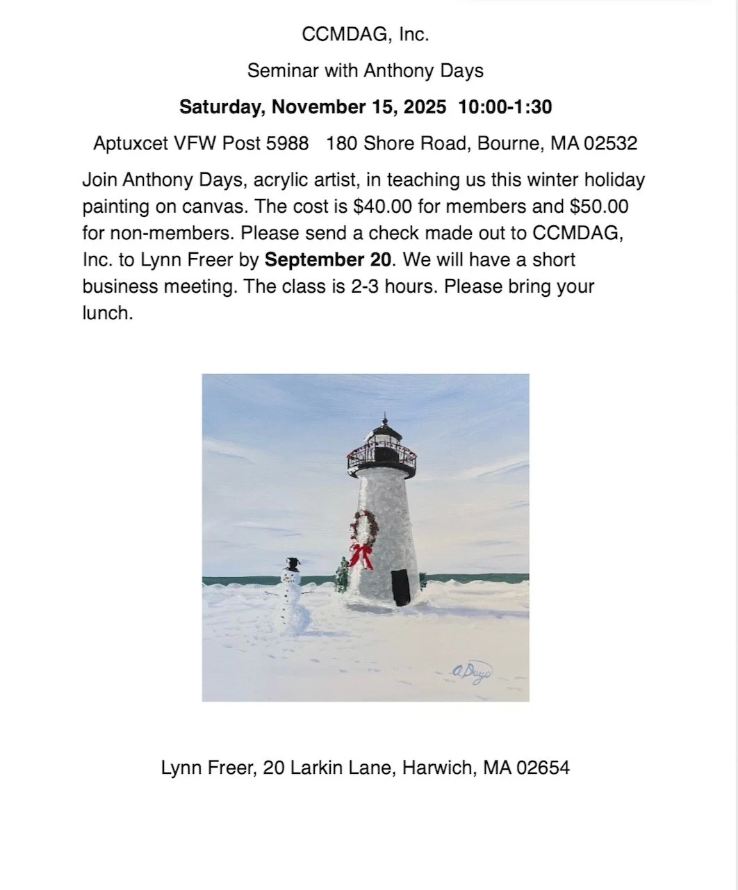 Sponsored by Cape Cod Mayflower Decorative Artist Guild, Inc. CCMDAG