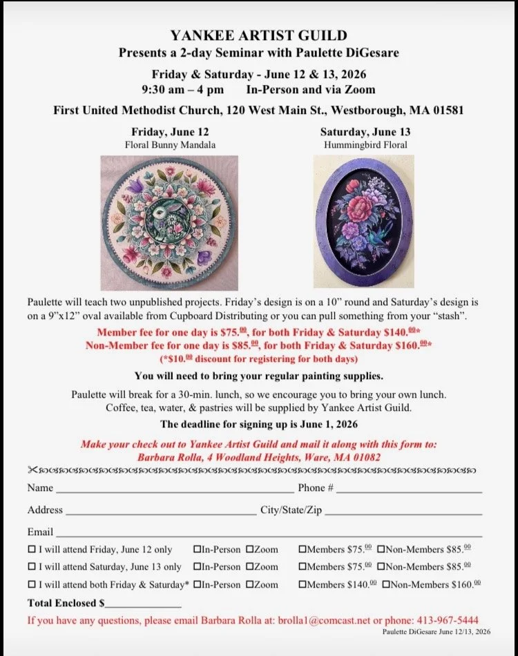 Yankee Artist Guild presents a 2 day Seminar with Paulette DiGesare